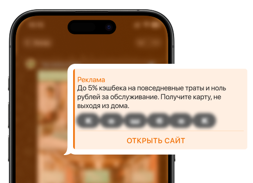 ● только текстовое объявление с CTA «Получите карту, не выходя из дома»;